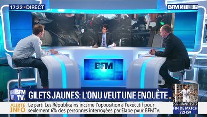 L'ONU réclame à Paris de mener une "enquête approfondie" sur les violences policières qui se seraient produites lors des manifestations des gilets jaunes. Dans le collimateur du Haut-Commissaire aux droits de l'homme: les LBD (lanceurs de balles de défense). On en parle avec Shirelle David, gilet jaune reçue à l'ONU, intermittente. Nicolas Krameyer, d'Amnesty international France. Et Benoit Barret, secrétaire national adjoint d'Alliance police nationale. - BFM Story, du mercredi 6 mars 2019, présenté par Thomas Misrachi, sur BFMTV.